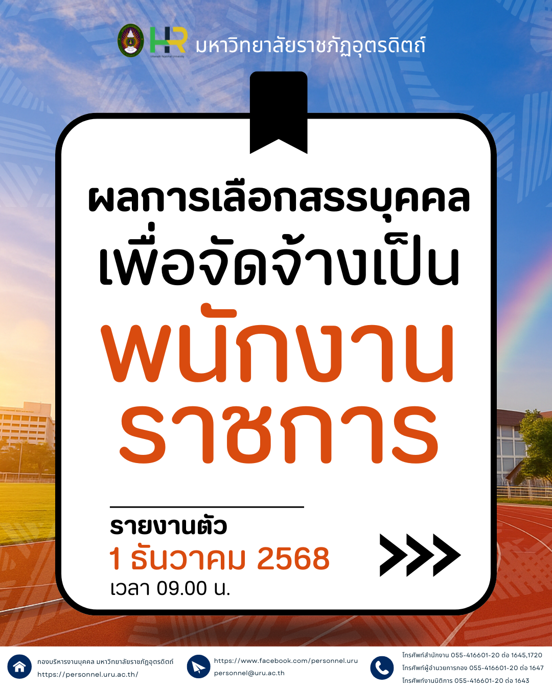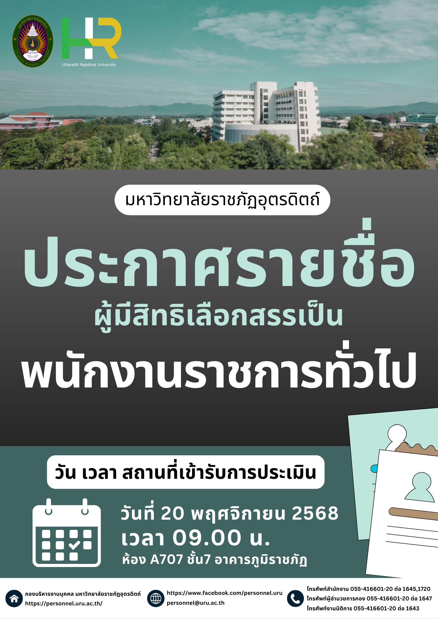 ประกาศมหาวิทยาลัยราชภัฏอุตรดิตถ์ เรื่อง ผลการเลือกสรรบุคคลเพื่อจัดจ้างเป็นพนักงานราชการทั่วไป ปีงบประมาณ 2569